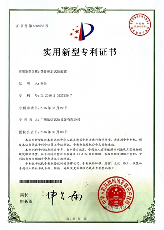 淋雨試驗(yàn)裝置-實(shí)用新型專利證書【岳信公司】